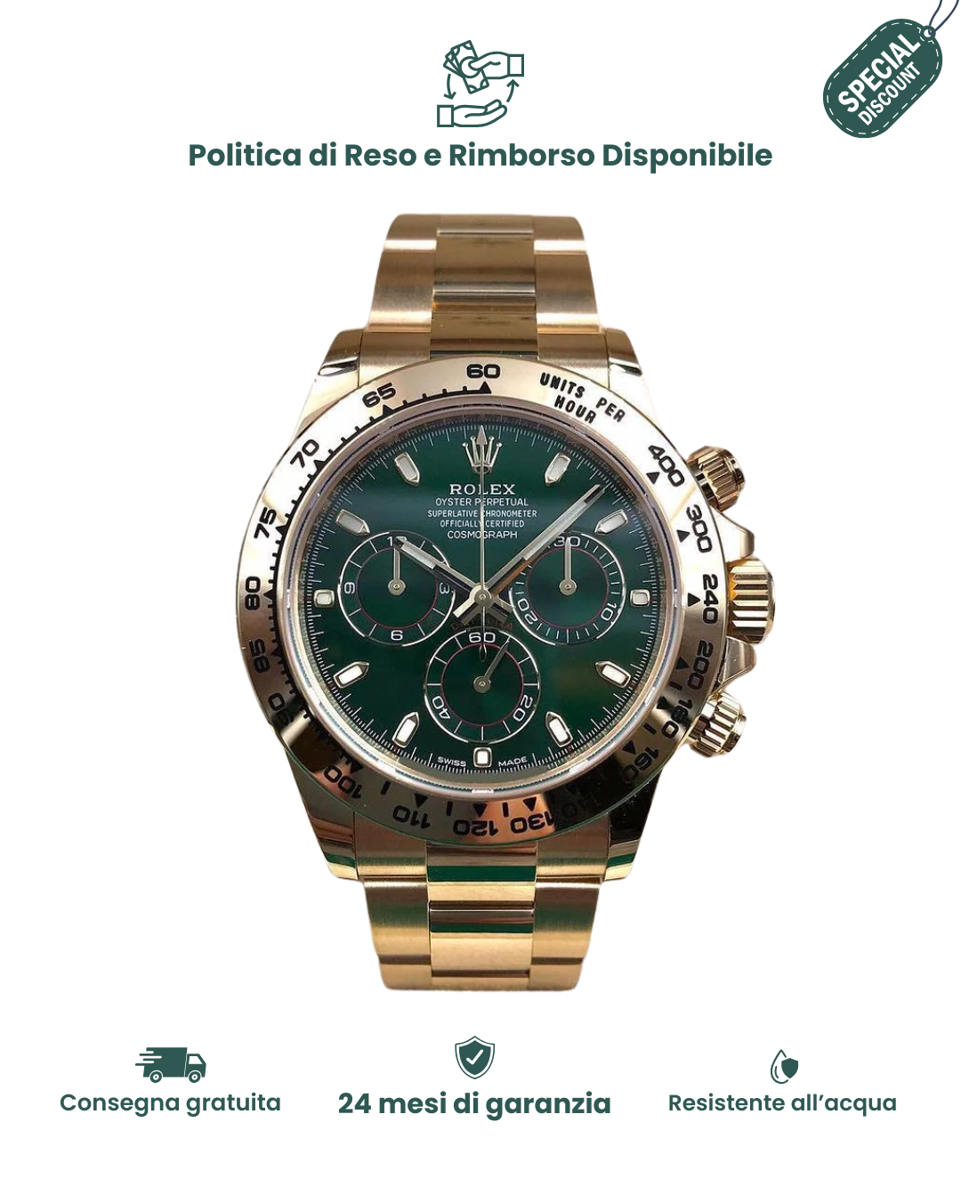 - Lancette trattate al Chromalight, lo stesso materiale utilizzato da Rolex, garantendo una luminescenza duratura nelle ore notturne.