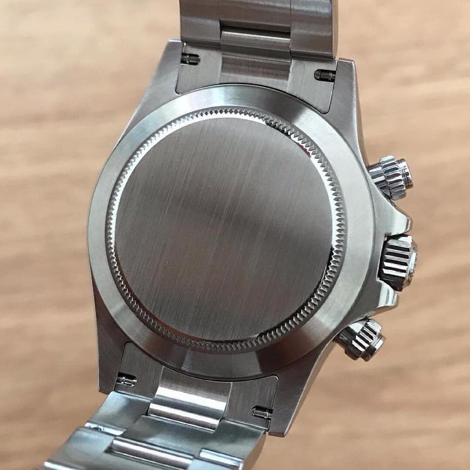• Cassa acciaio Inox pieno 904 AISI L fresato dal pieno, realizzata su base originale con strumenti di disegno al CAD. Le casse sono tutte timbrate e serigrafie come in originale: numero di matricola da un lato tra le ansette e numero di referenza