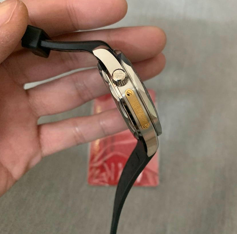 - Cassa acciaio Inox pieno 904 AISI L fresato dal pieno, realizzata su base originale con strumenti di disegno al CAD. Le casse sono tutte timbrate e serigrafie come in originale: numero di matricola da un lato tra le ansette e numero di referenza